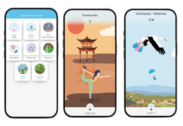 Les programmes évoluent en fonction de vos progrès et les exercices proposés dépendent de vos résultats et de vos besoins. Une rééducation périnéale sur-mesure, en toute confiance et à votre rythme.